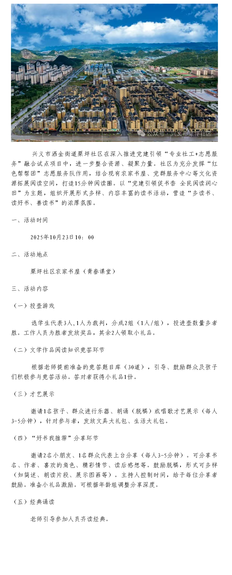 【活动预告】栗坪社区“党建引领促书香 全民阅读润心田”读书活动