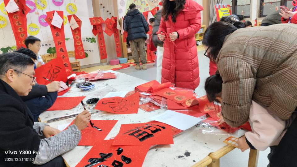 教育进学校,共同学习书法知识