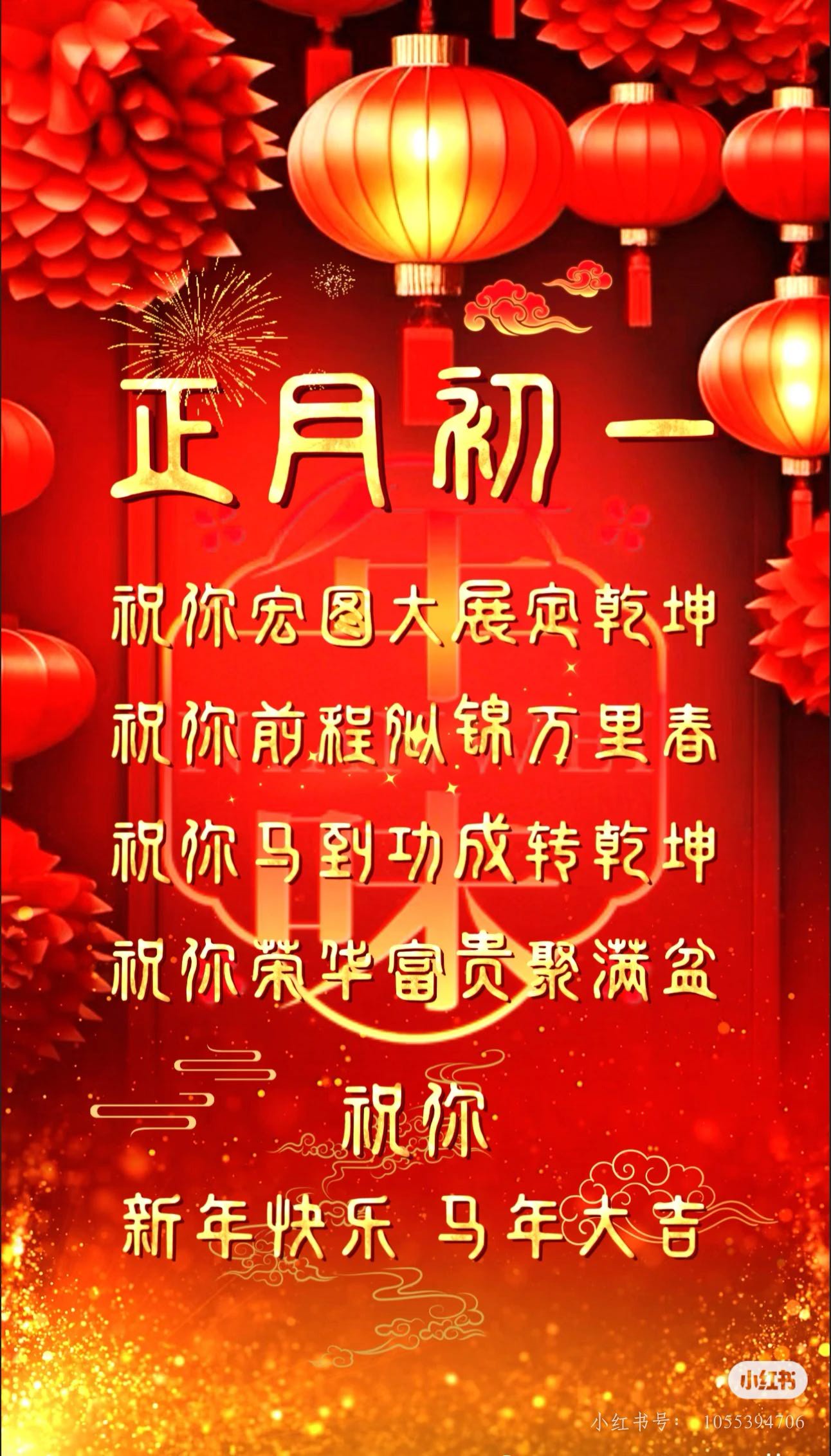[emoji]新年快乐⚡️[emoji] 初一启新,万象更新。金马送福,喜气洋洋。祝您春风得意,百事亨通。烦恼全清零,快乐常相伴,纳福纳财生活步步高升,日子越过越红火![emoji]