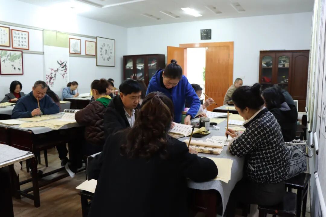 书画室里,学员们挥毫泼墨、静心创作